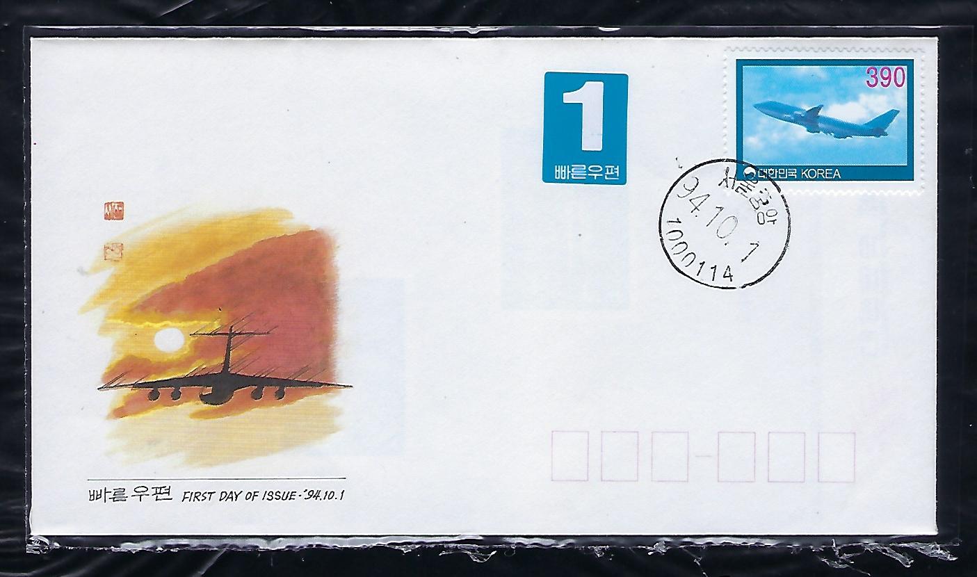기본료 130원시기 보통 390원 비행기 초일봉투 ( F.D.C)