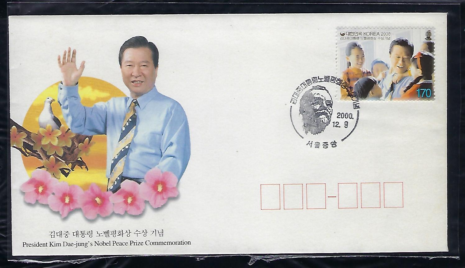 2000년 김대중 대통령 노벨상 수상 기념 우표 초일 봉투(FDC)