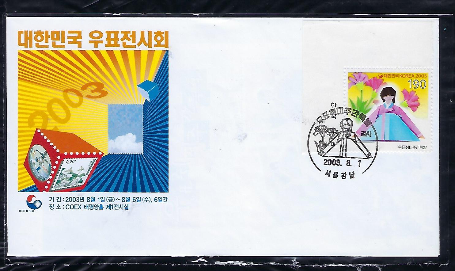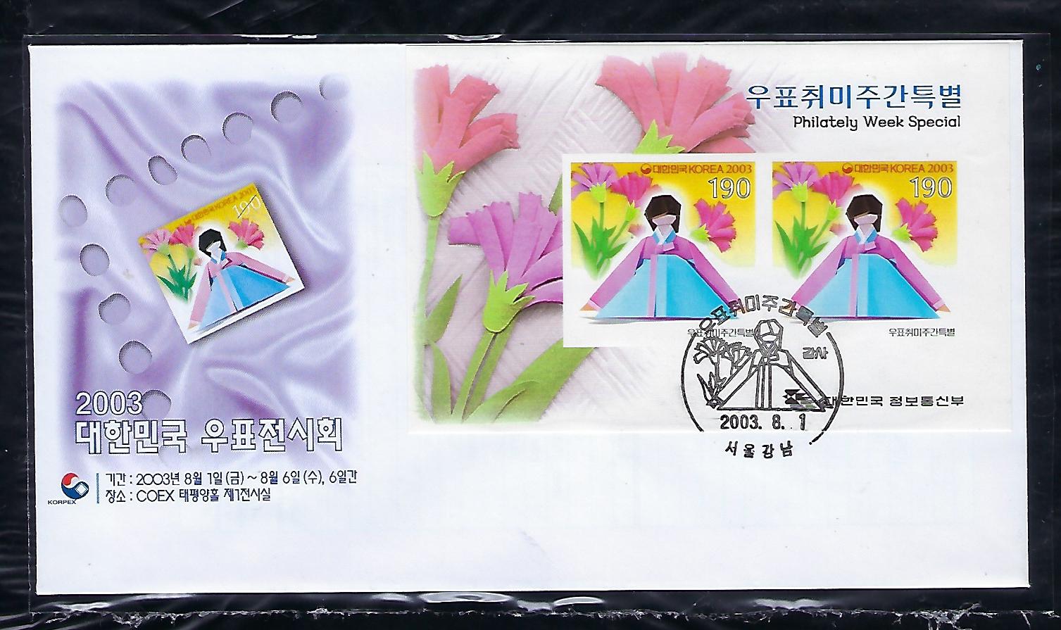 2003년 우표 취미주간 우표 안내 카드 포함 초일 봉투(FDC)