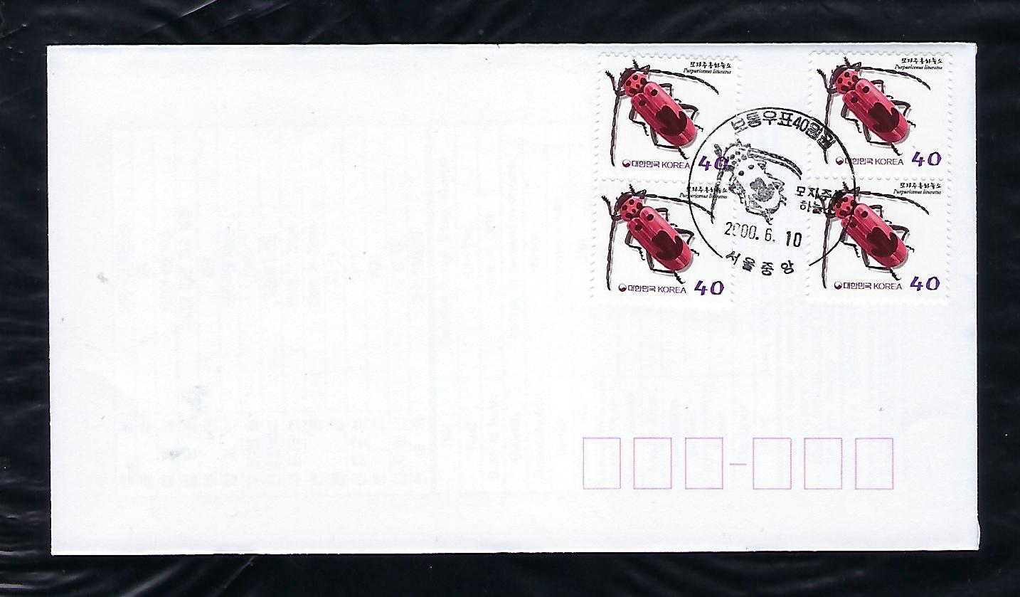 기본료 170원시기 보통 40원 모자주홍 하늘소 4장 안내 카드 포함 초일봉투 ( F.D.C)