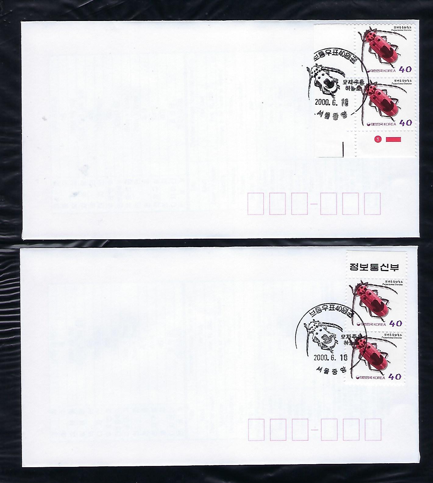 기본료 170원시기 보통 40원 모자주홍 하늘소 2장 안내 카드 포함 초일봉투 ( F.D.C)