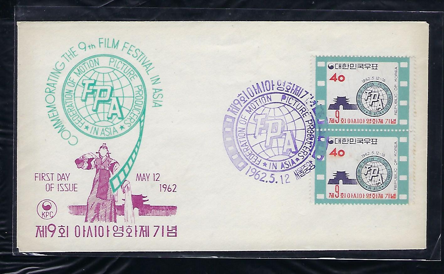 1962년 제9회 어시아 영화제 2장 초일봉투(FDC)