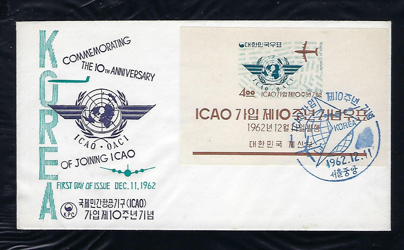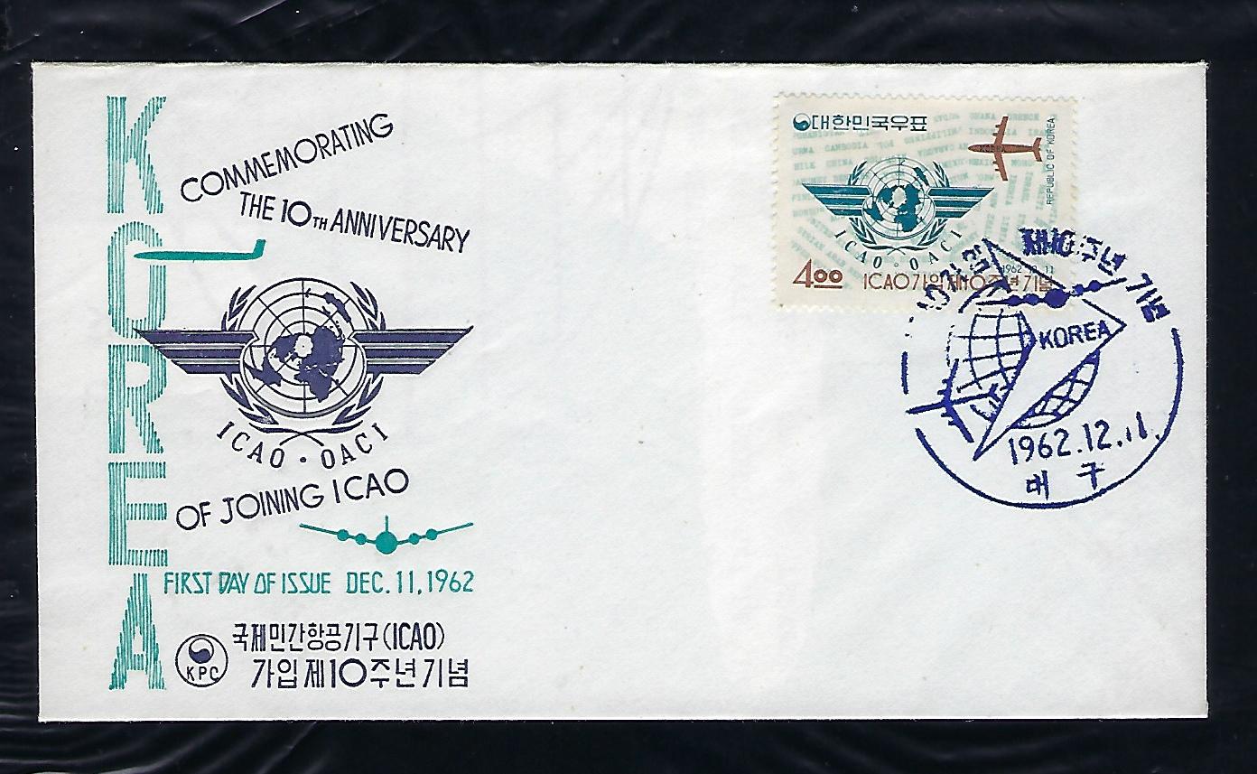 1962년 국제 민간 항공기구 가입 10년 초일봉투 (FDC)