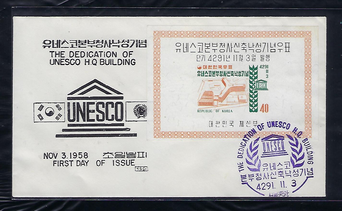 1958년 유네스코 청사 낙성 시트 초일봉투(FDC)