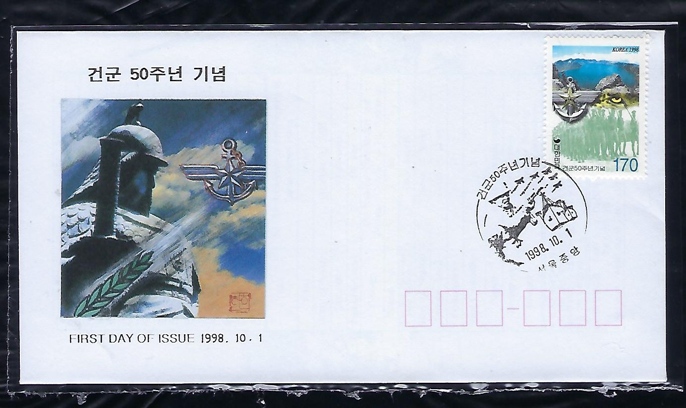 1998년 건군 50주년 기념 우표 안내 카드 포함 초일 봉투(FDC)