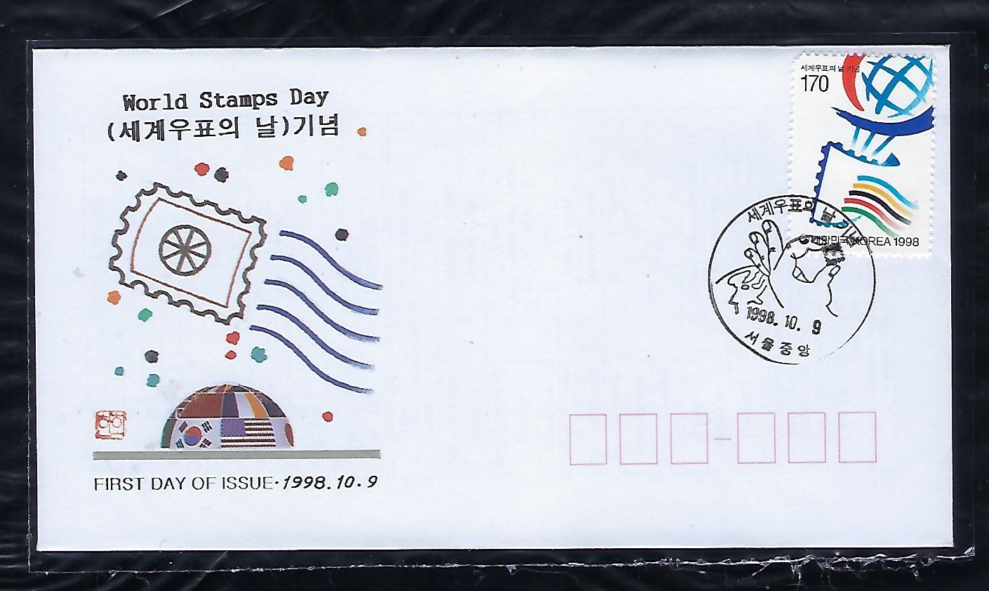 1998년 세계 우표의 날 기념 우표 안내 카드 포함 초일 봉투(FDC)