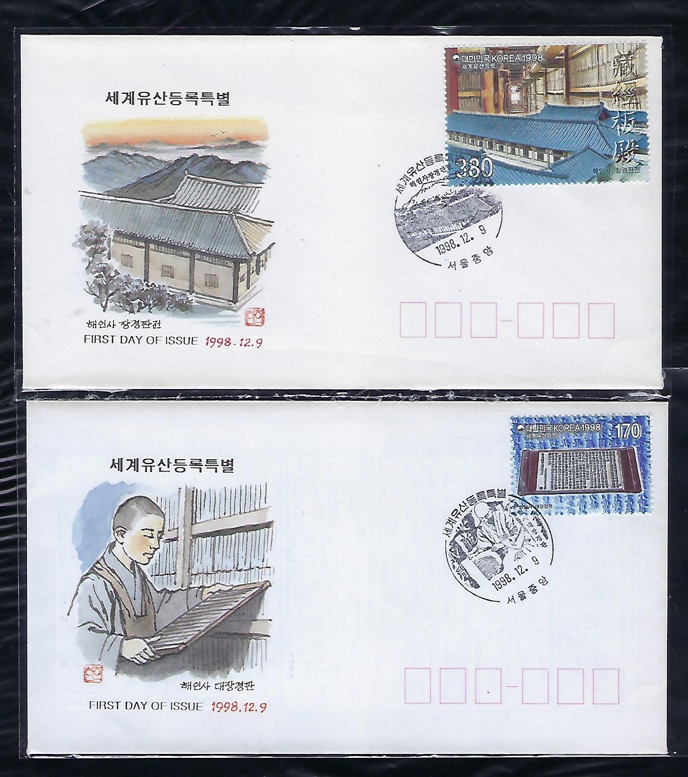 1998년 세계 유산 등록 제2집 우표 안내 카드 포함 초일 봉투(FDC) 2완