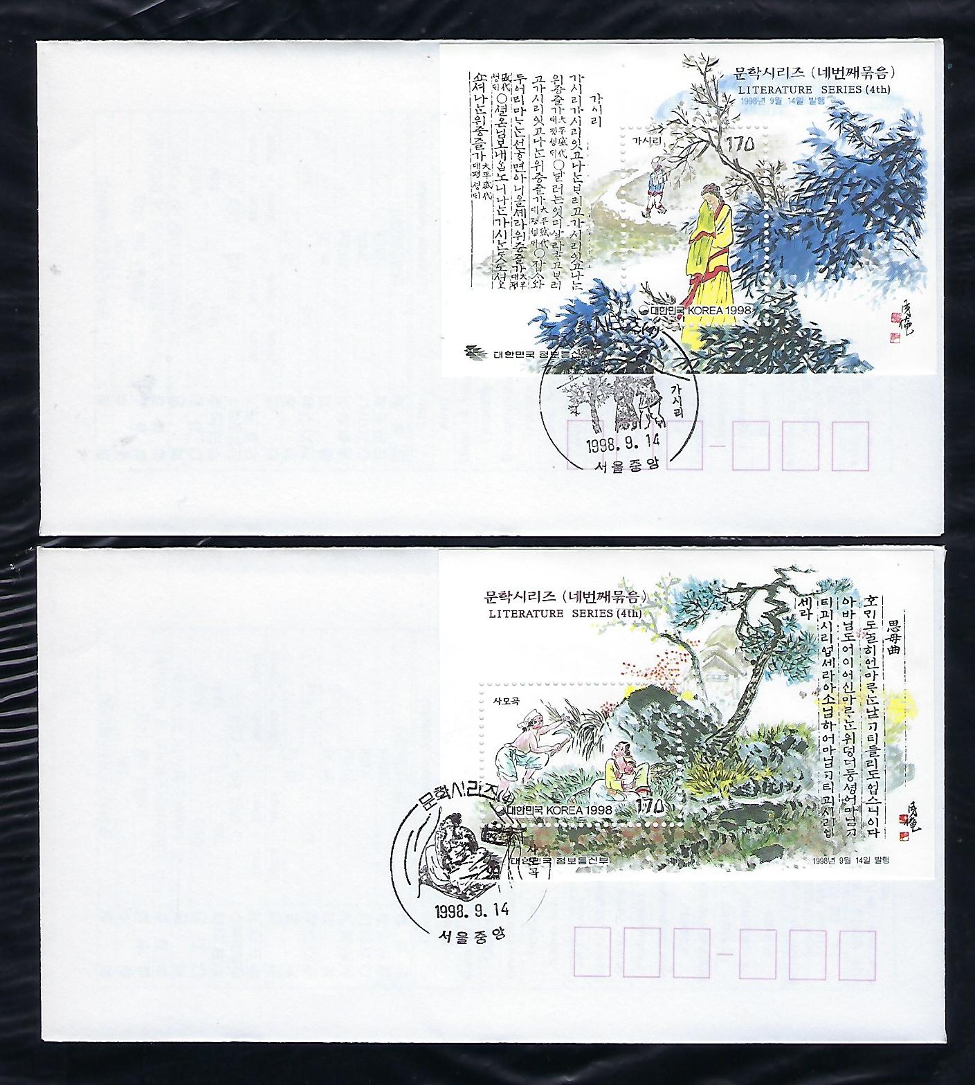 1998년 문학 시리즈 (제4집) 시트 우표 안내 카드 포함 초일 봉투(FDC) 2완