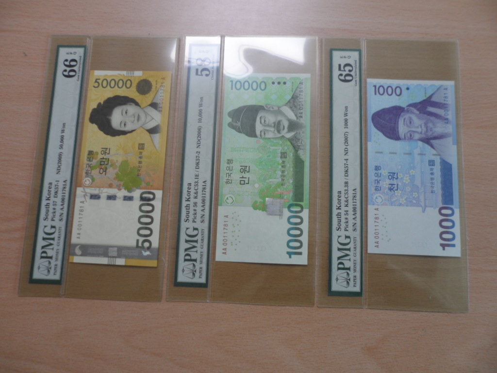 한국은행 신10000원 5000원 1000원권 초판AAA0011포인트3쌍둥이 PMG65-6