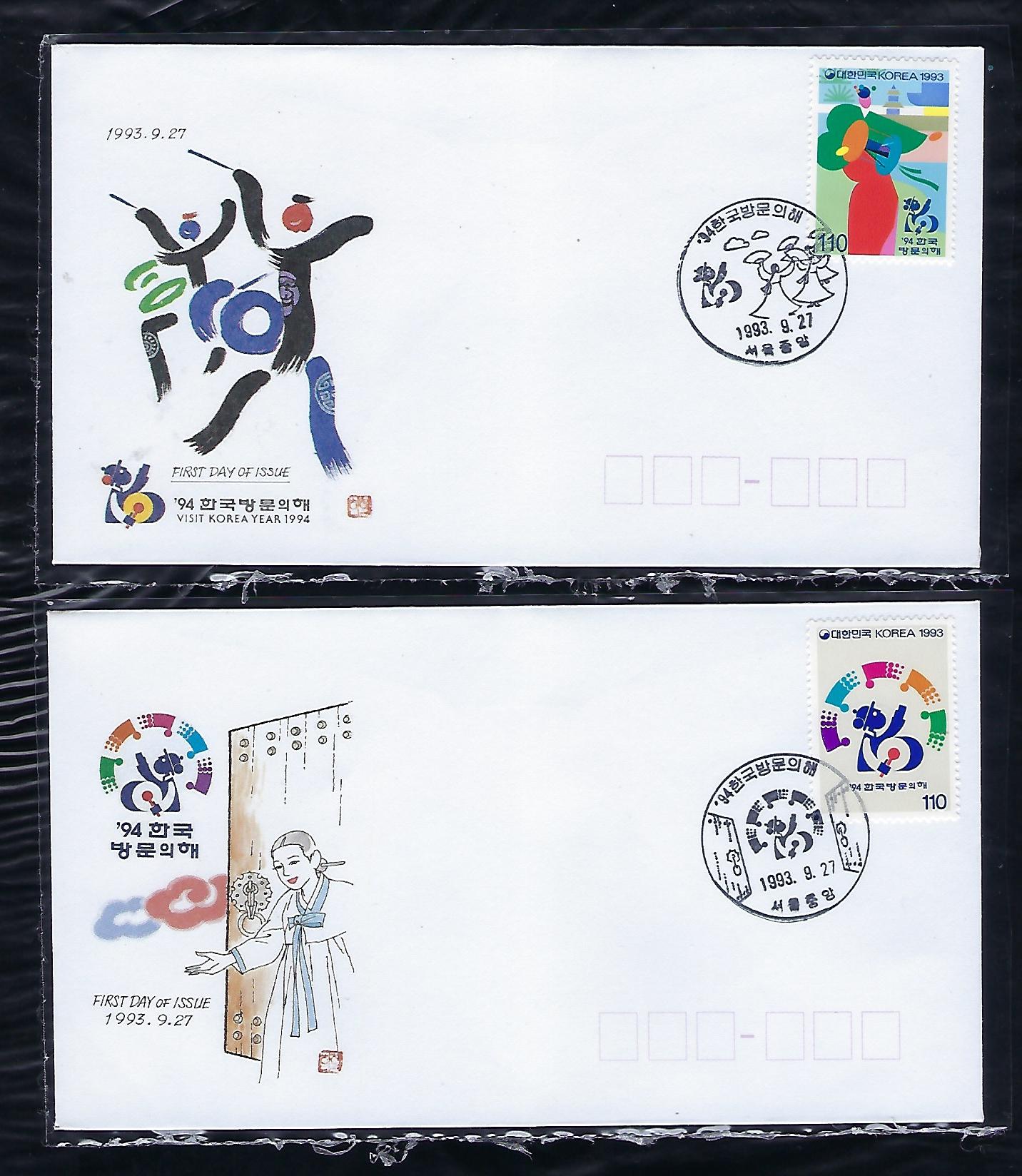 1993``94 한국방문의 해 우표 초일 봉투(FDC) 2완