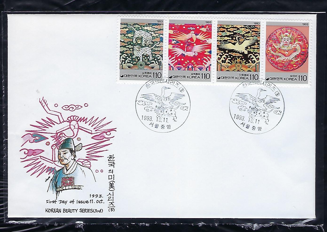 1993년 한국의 미시리즈 4종연쇄 우표 초일 봉투(FDC)