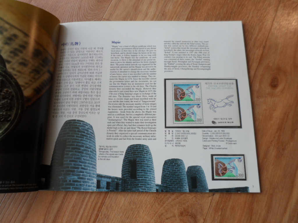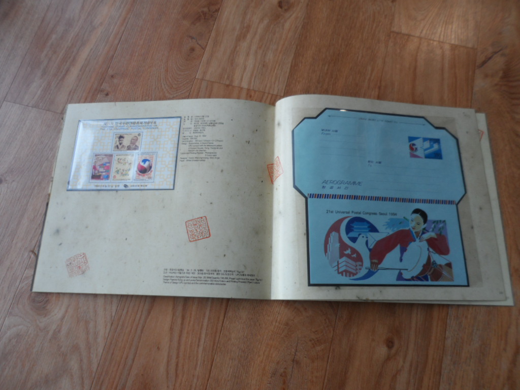 내용은 기념 우표 8종 시트8장과 항공서간 엽서4장이 마운트에 넣어 잘 정리되어있습니다.