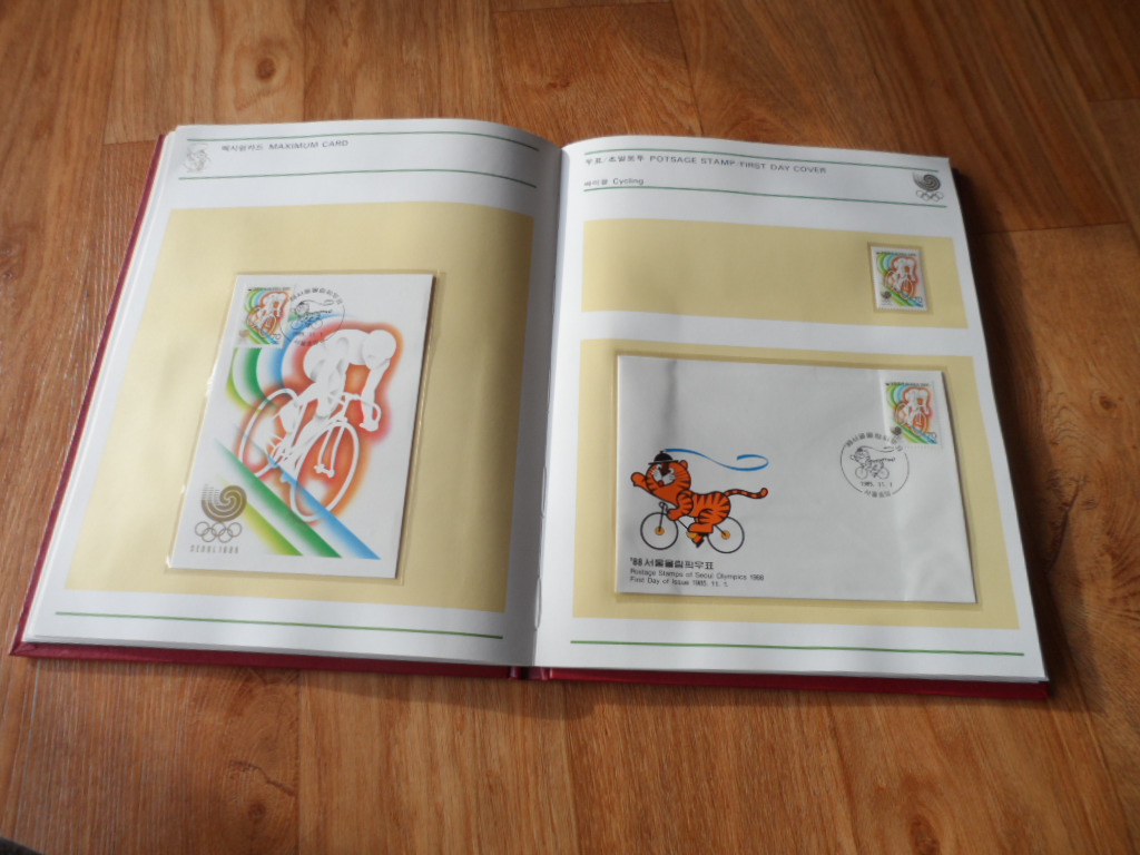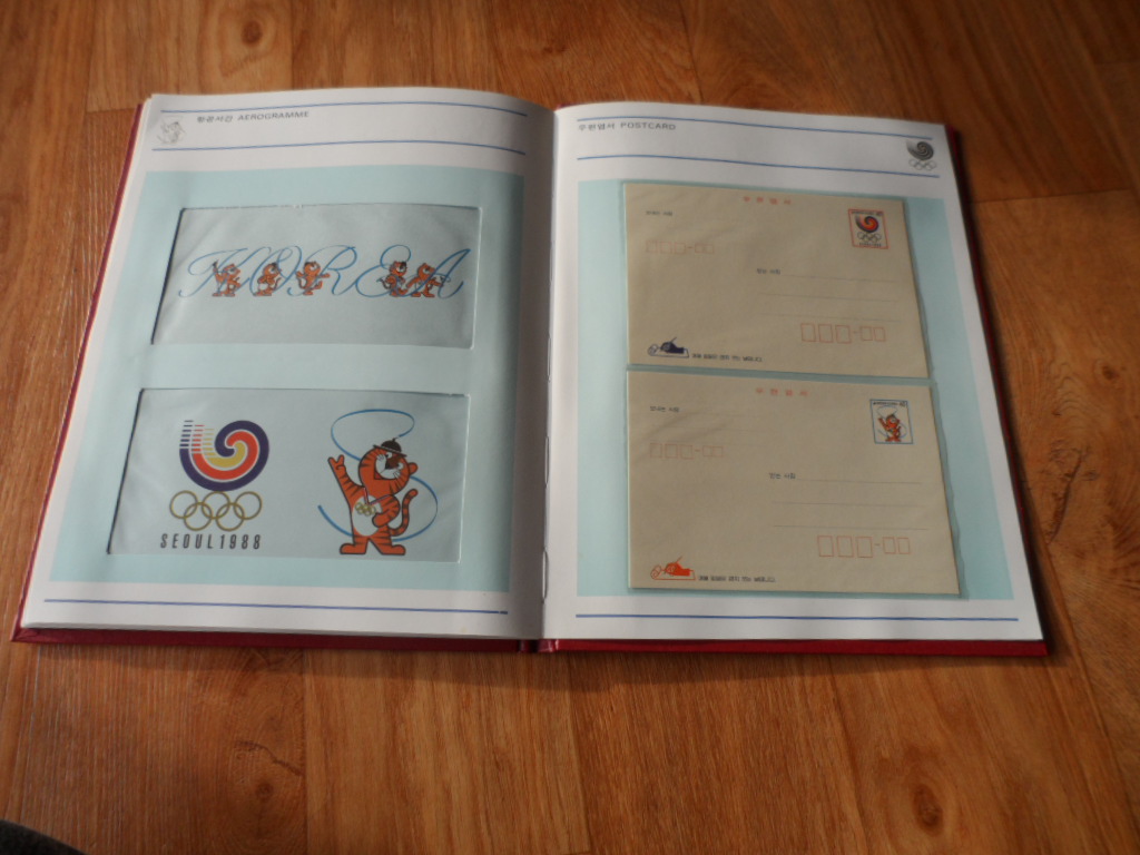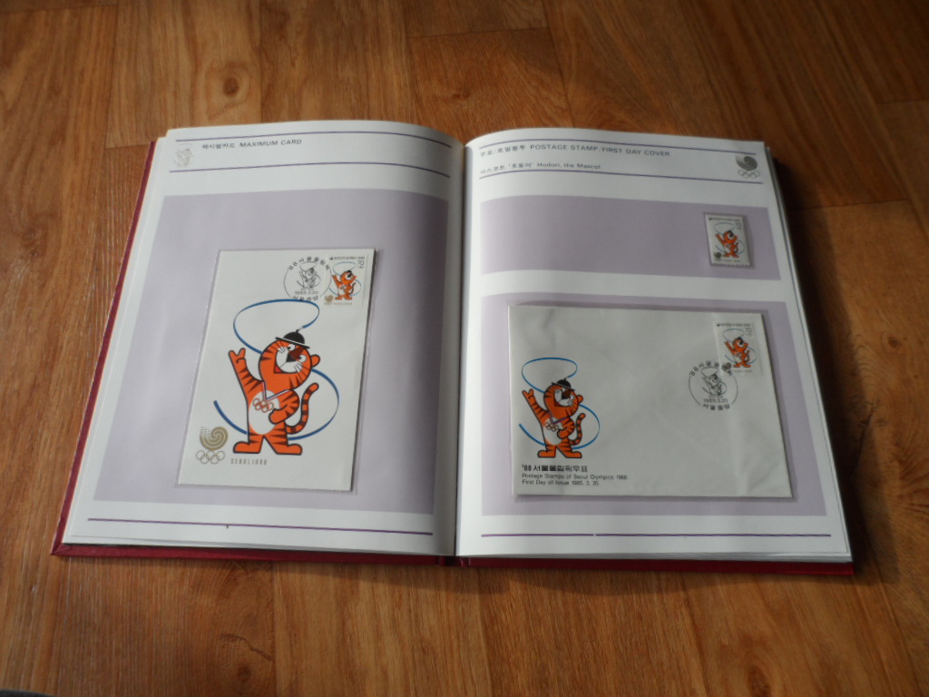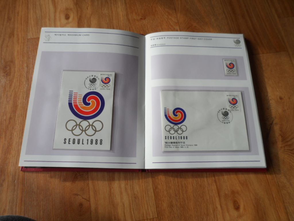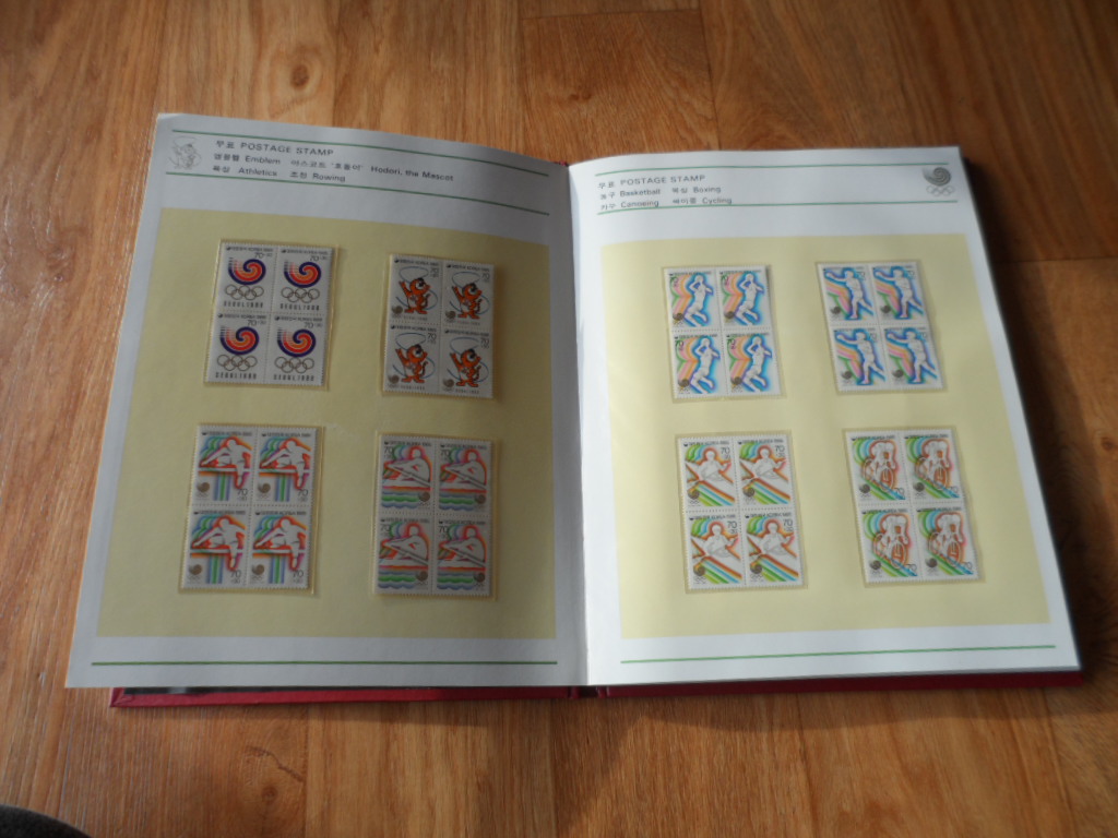 > 전체카테고리 > 한국우표 > 우표첩책 서울 올림픽 시리즈 1집~4집까지의 <4매 블럭, 시트, 초일봉피, 기념엽서, 항공서간> 등 으로 구성된 멋진 우표책입니다.
