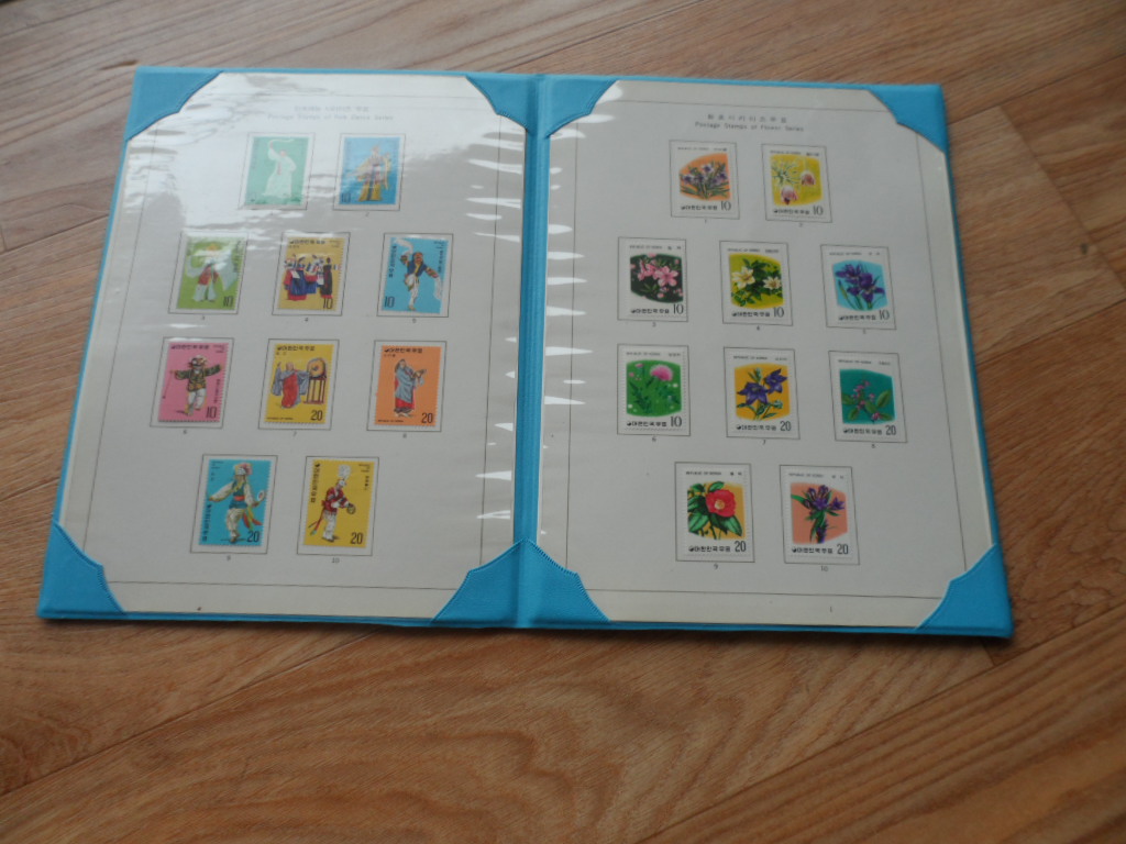 내용은 민속예능시리즈 10종과 화초시리이즈10종 2셋트가 우표첩에 잘 정리되어있습니다.