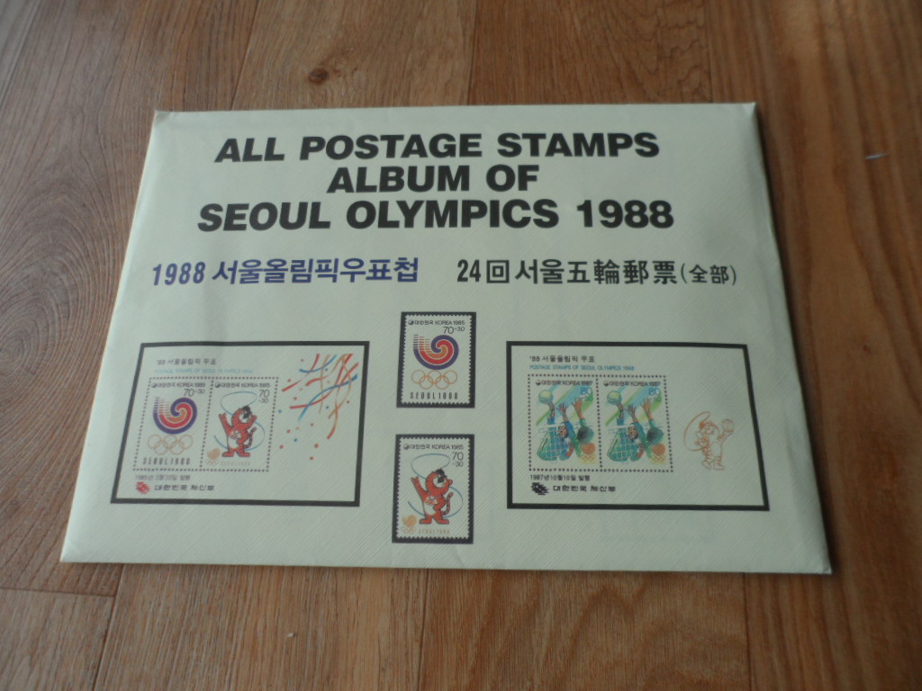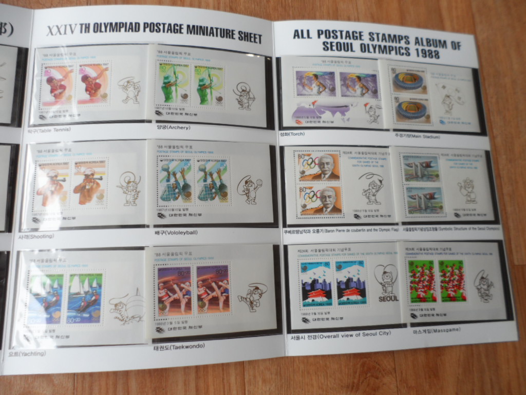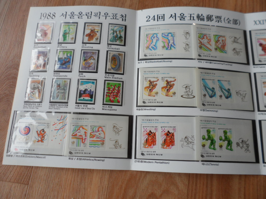 > 전체카테고리 > 한국우표 > 우표첩책 88 서울 올림픽 우표첩으로 우표 32종과 소형시트 20종이 마운트에 넣어 잘 정리되어 있습니다.상태 사진과 같이 아주 좋습니다(VF).