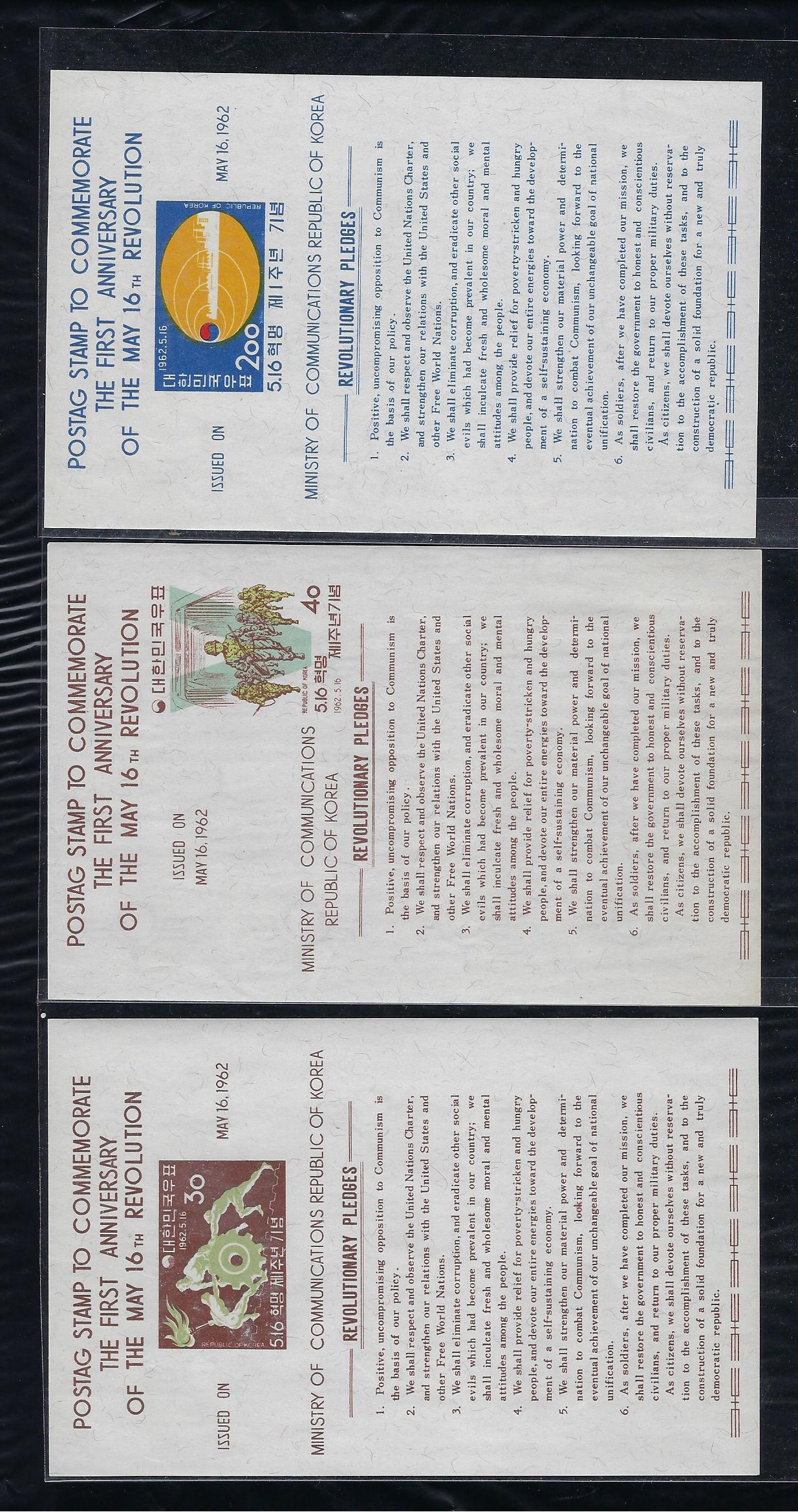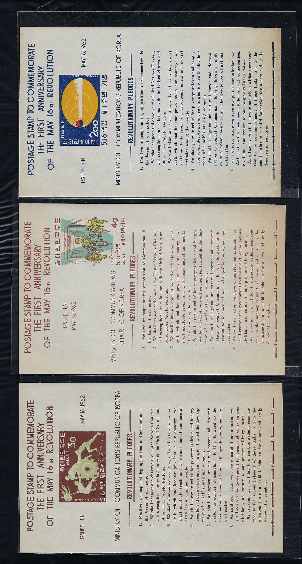 1962년 발행 5.16 혁명 1년 시트 9종완
