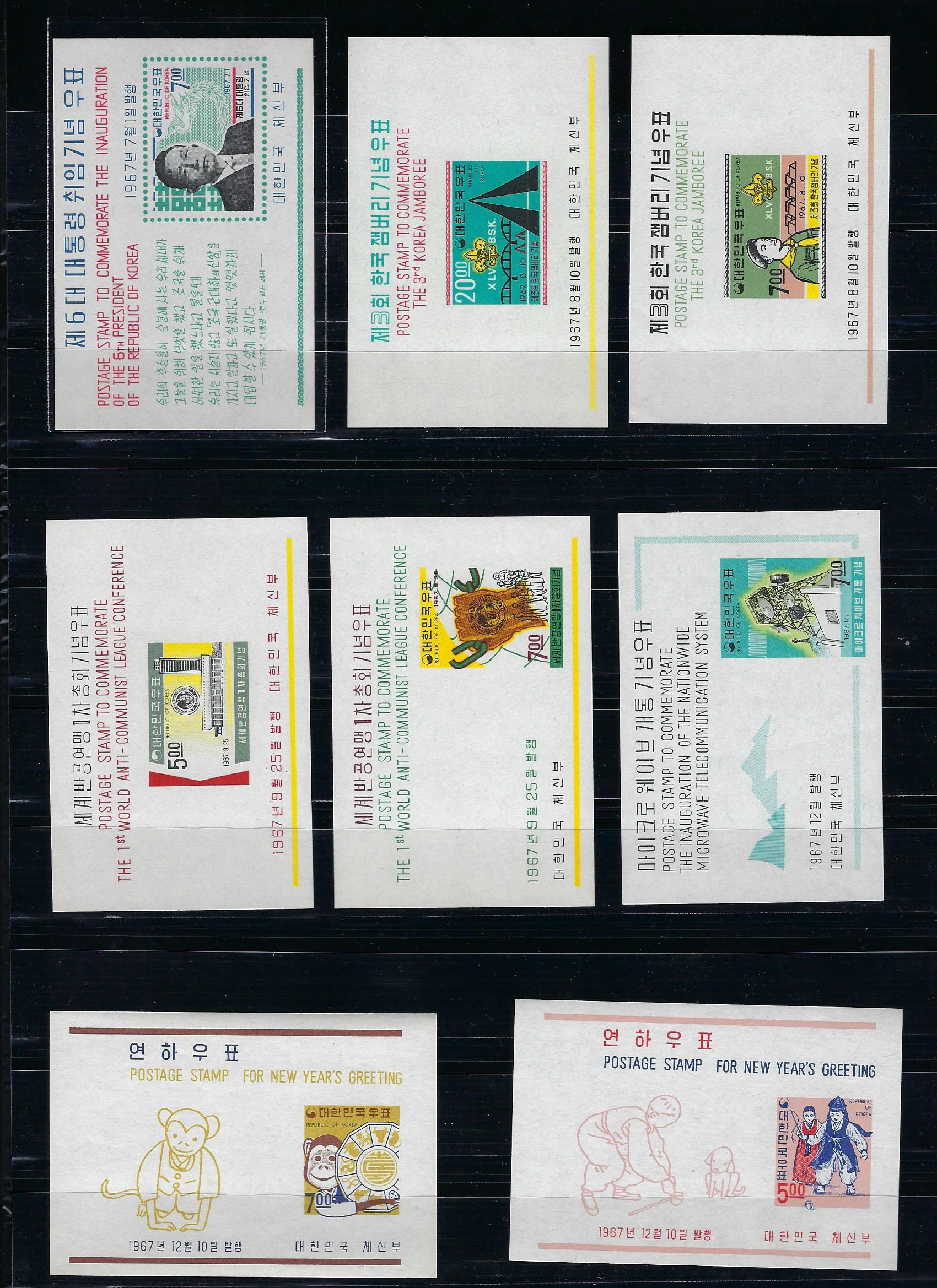 > 전체카테고리 > 한국우표 > 기념시트 > 시트처음부터1970년까지 1967년 발행 기념 연하 소형시트 25종완 으로 상태 아주 좋습니다.