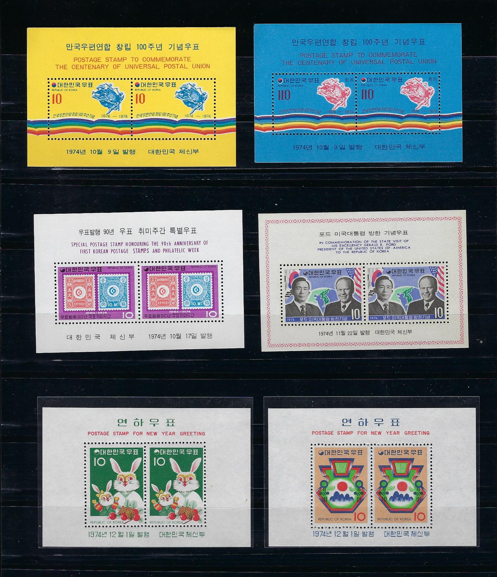 > 전체카테고리 > 한국우표 > 기념시트 > 1971~1990년 1974년 발행 기념 연하 소형시트 27종으로 상태 아주 좋습니다.