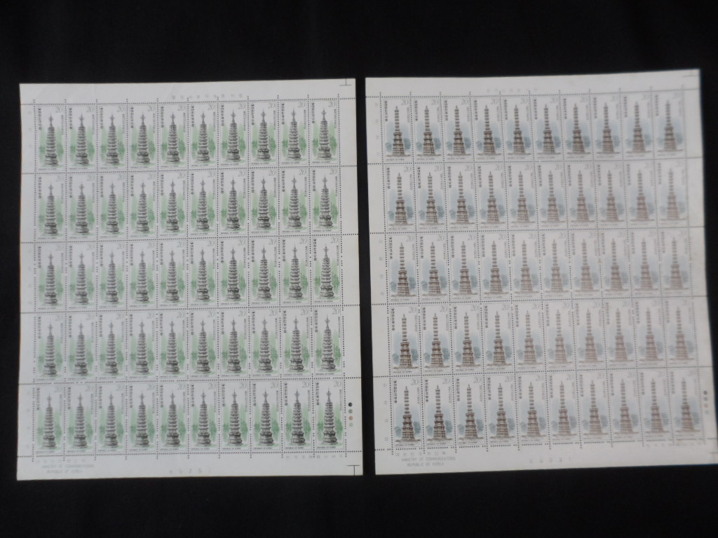 78년 석탑시리즈 우표 전지 10완