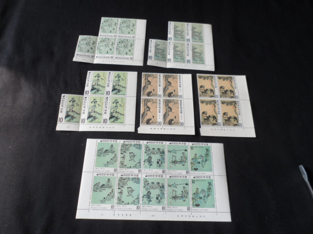 1970년도 발행 기념 연하 우표 명판田형 35종으로 상태 아주 좋습니다(VF).