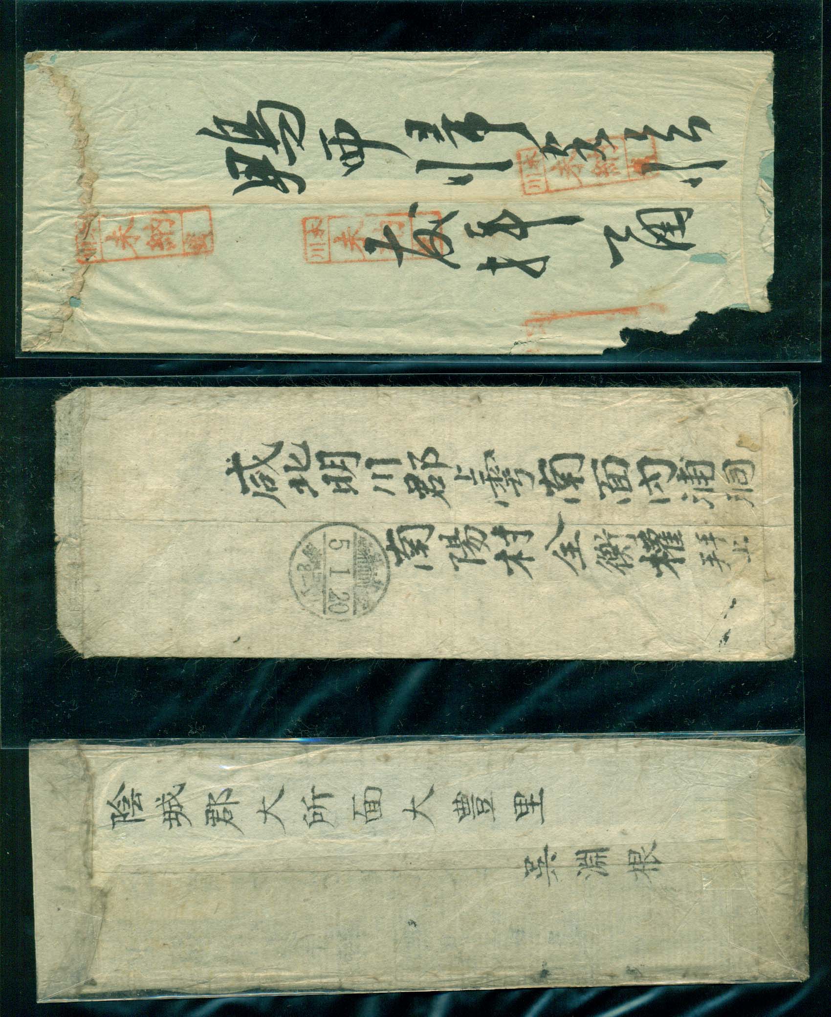 > 전체카테고리 > 한국우표 > 실체봉피 | 1902-8년 요금 미납 실체 3종입니다. 일부인은 3.11.3 5.1.17 8.9.16(선명치 않음) 으로 되어 있습니다. |
