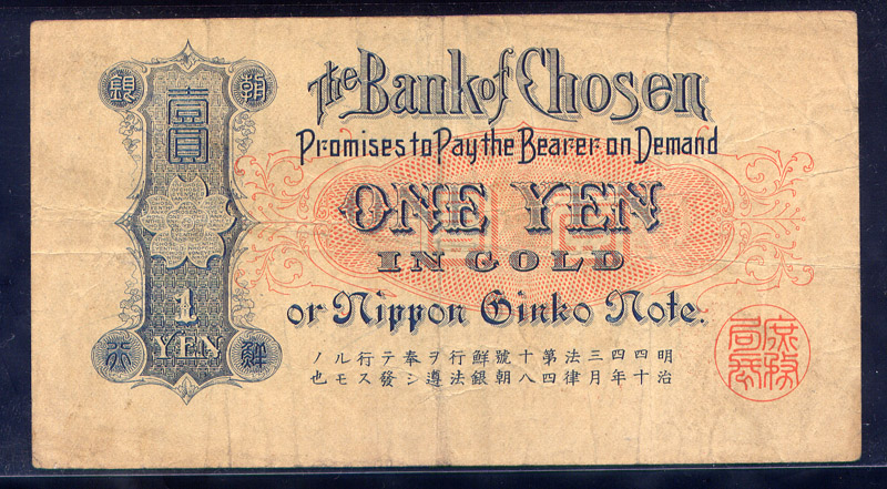> 전체카테고리 > 우리나라 지폐 > All 조선은행 1 원권 내각인쇄국 금권으로 상태는 사진에서 보시는 봐와 같이 미품정도입니다.