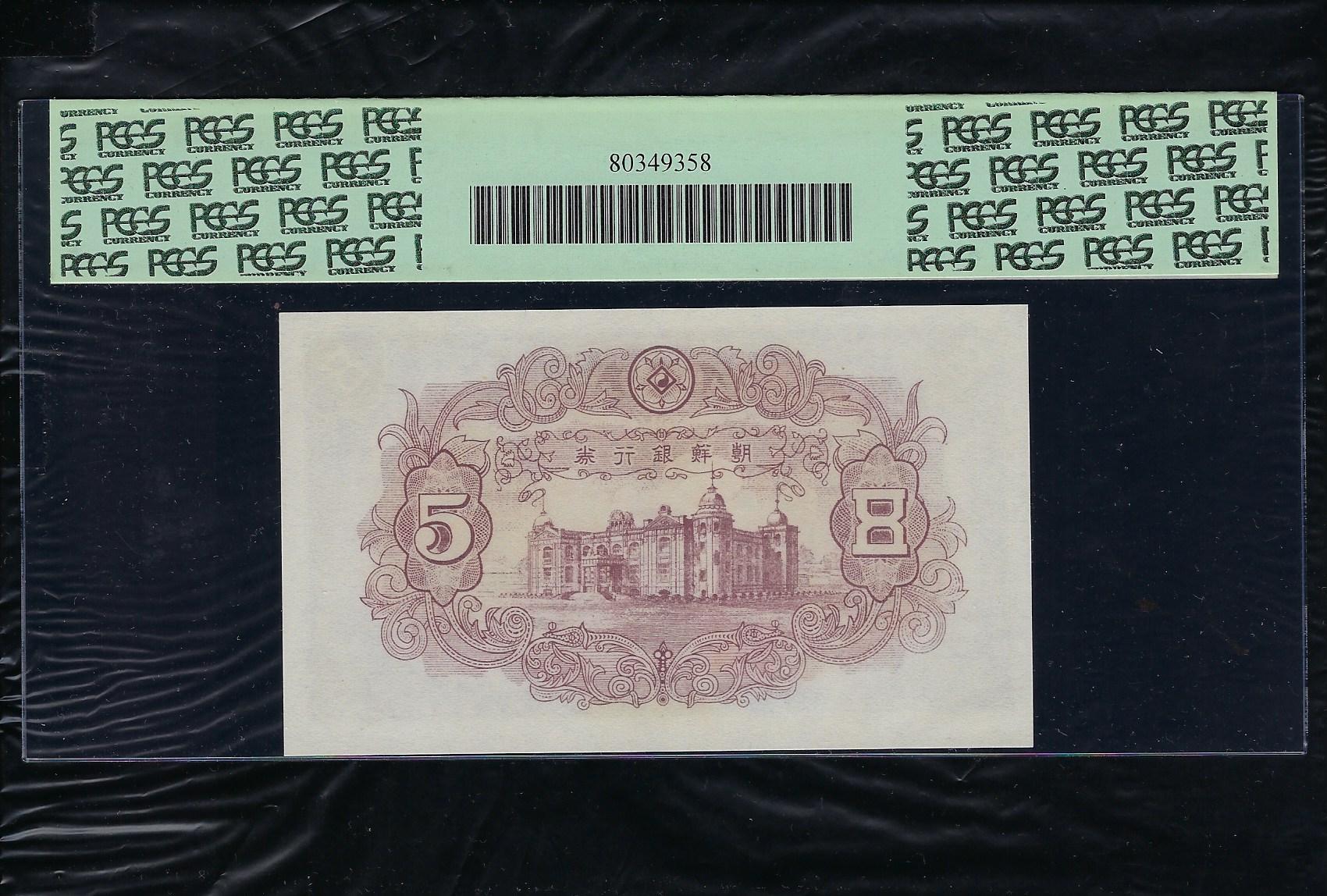 조선은행 신 5 원 독립문 제 4 판으로 상태는 사진에서 보시는 봐와 같이 더 설명이 필요 없는 최 상위 준미사용품 PCGS 58  등급입니다.
