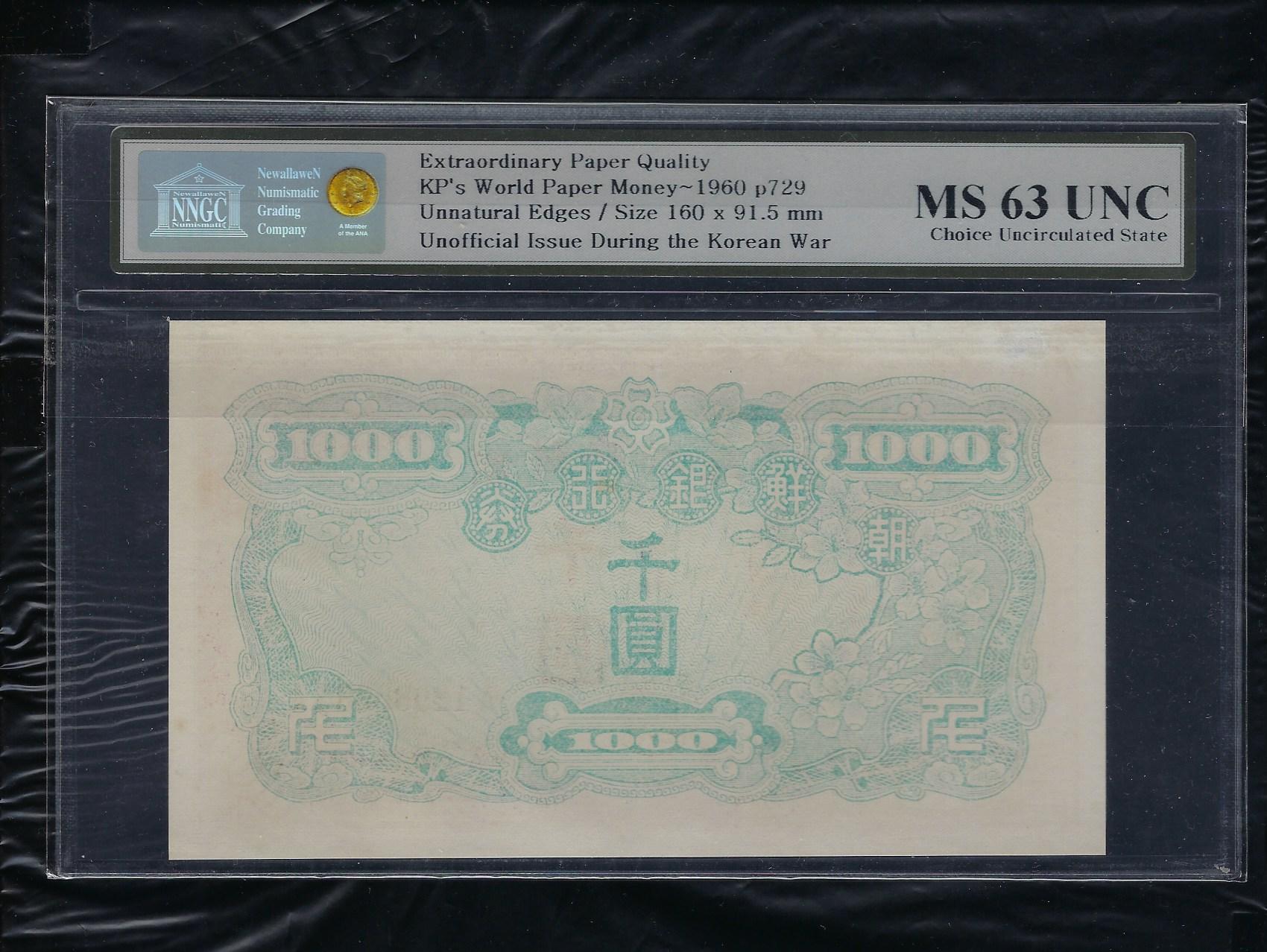 조선은행(미발행권) 신 1000원권 AA 초판 NNGC MS 63 UNC