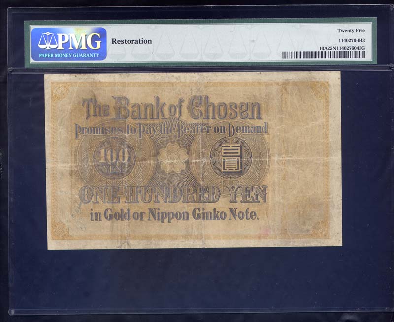 조선은행 100원권(금권) 내각인쇄국 PMG 25
