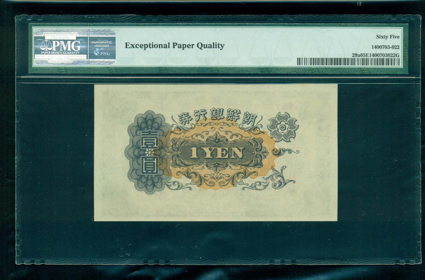 조선은행 개 1원권 유번호권 PMG 65 EPQ