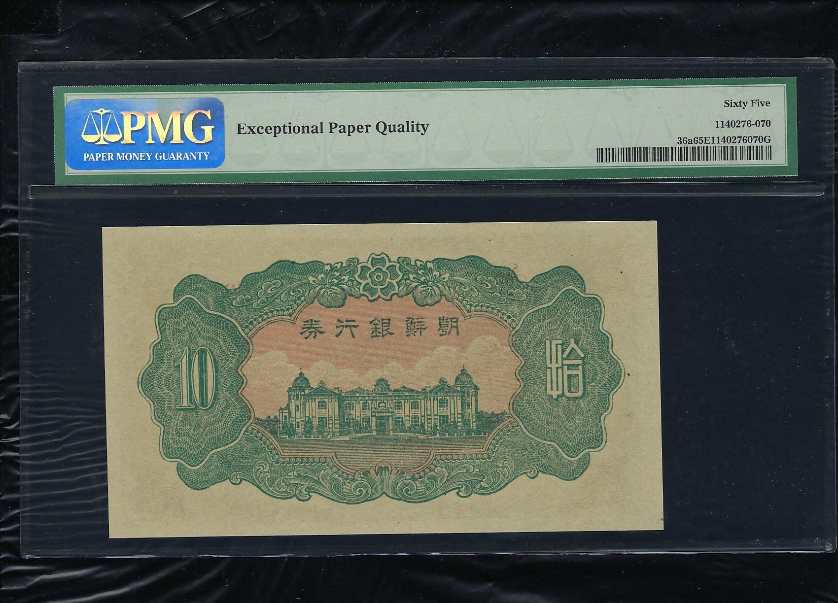 조선은행 갑 10원권 82판 무번호권으로 상태는 사진에서 보시는 봐와 같이 더 설명이 필요 없는 완전미사용품 PMG 65 EPQ등급입니다.