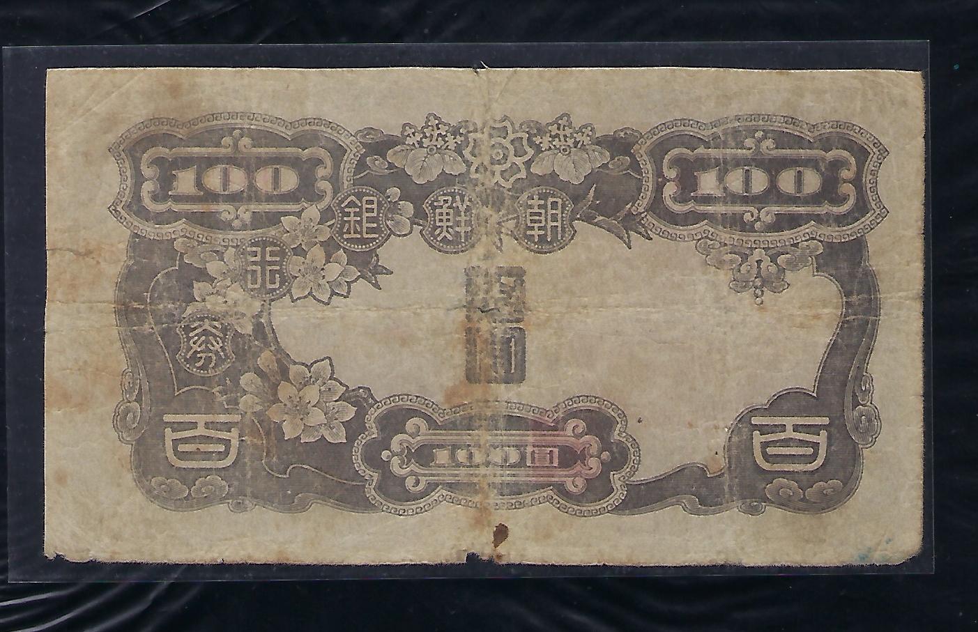 > 전체카테고리 > 우리나라 지폐 > 조선은행권 > 조선은행병100원권 조선은행 병 100원권으로 상태 사진에서 보시는 봐와같이 보품정도입니다.