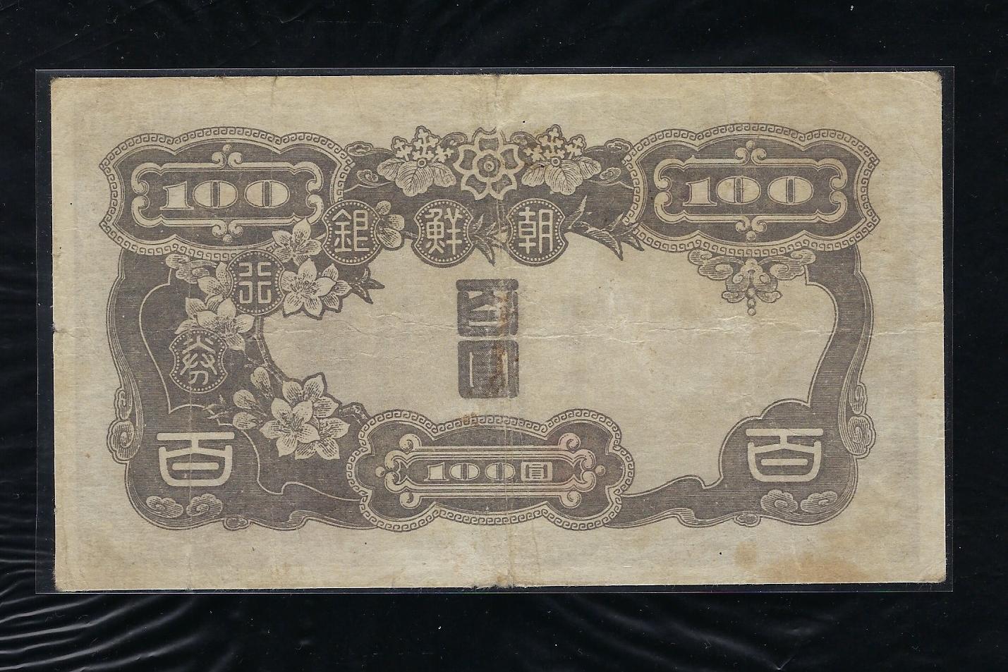 > 전체카테고리 > 우리나라 지폐 > 조선은행권 > 조선은행병100원권 조선은행 병 100원권 제3판으로 상태는 사진에서 보시는 봐와 같이