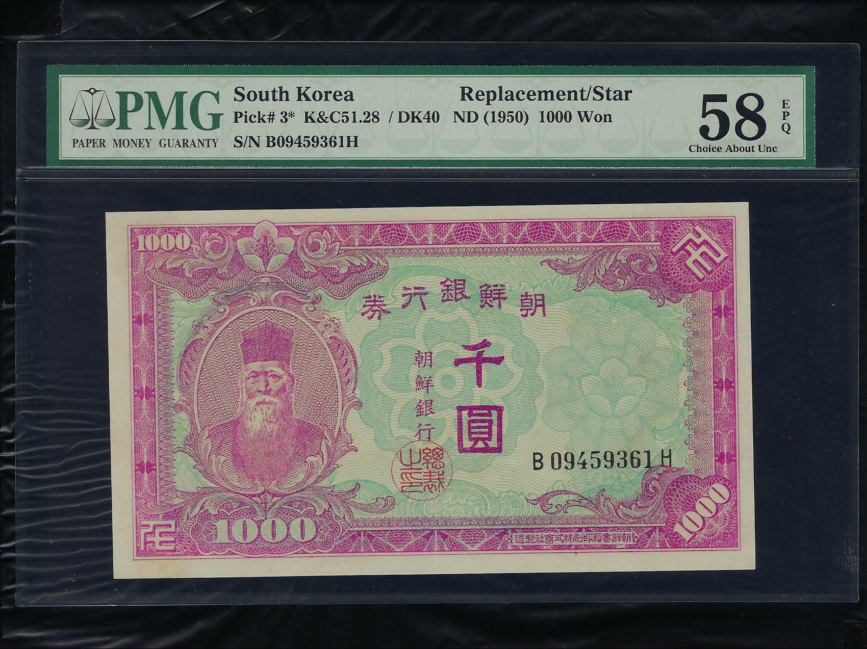 참고로 한국화폐도록 평가금액은 준미사용품이 60,000원입니다만 최 상위 준미사용품 PMG 58 등급 은 훨씬 더 높은 가격에 거래됩니다..