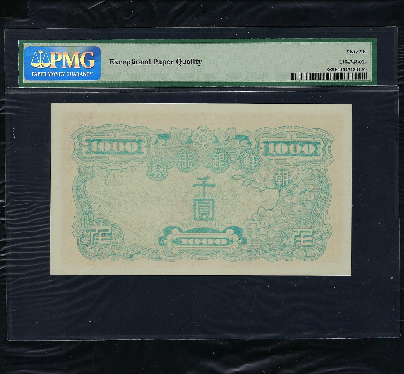 조선은행(미발행권) 신 1000원권 AA 초판 PMG 66