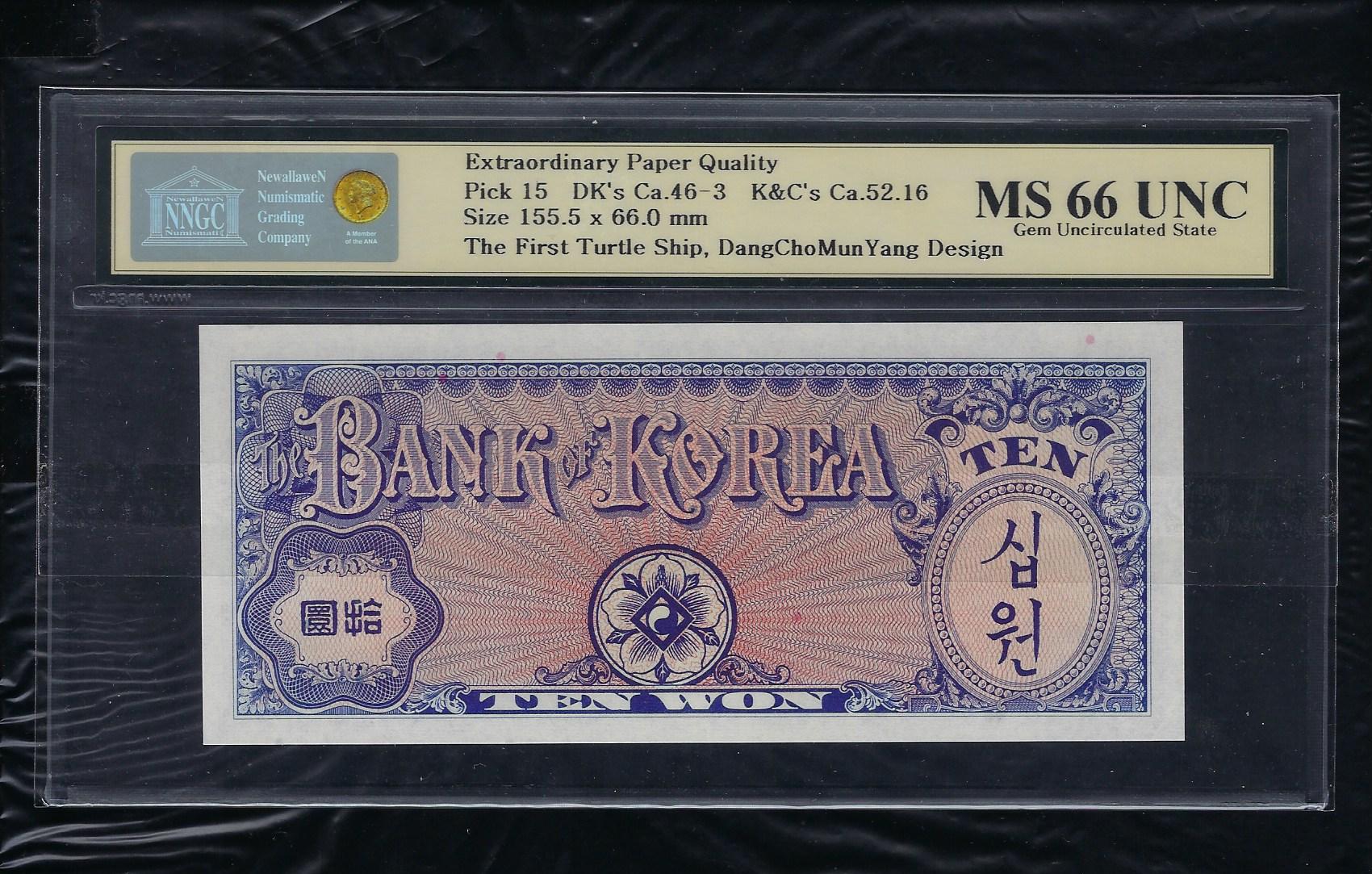 한국은행 10 환권 거북선 NNGC MS 66 UNC