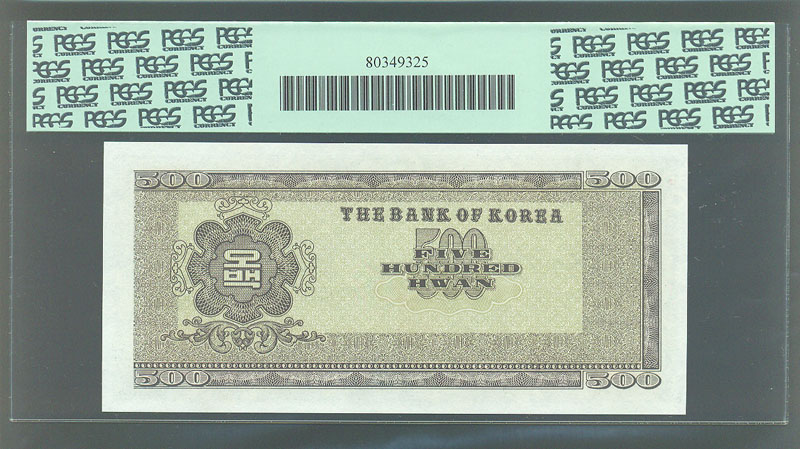> 전체카테고리 > 우리나라 지폐 > 한국은행권 한국은행 신 500 환권 4292년 우이박 제 49 판으로 상태는 더 설명이 필요 없는 상위 준미사용품 PCGS 55 등급 입니다.