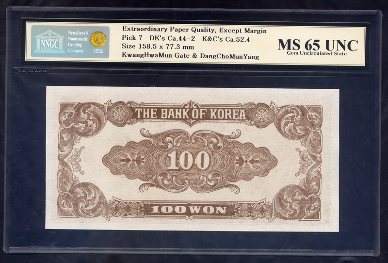 한국은행 100 원권 진고동 NNGC MS 65 UNC