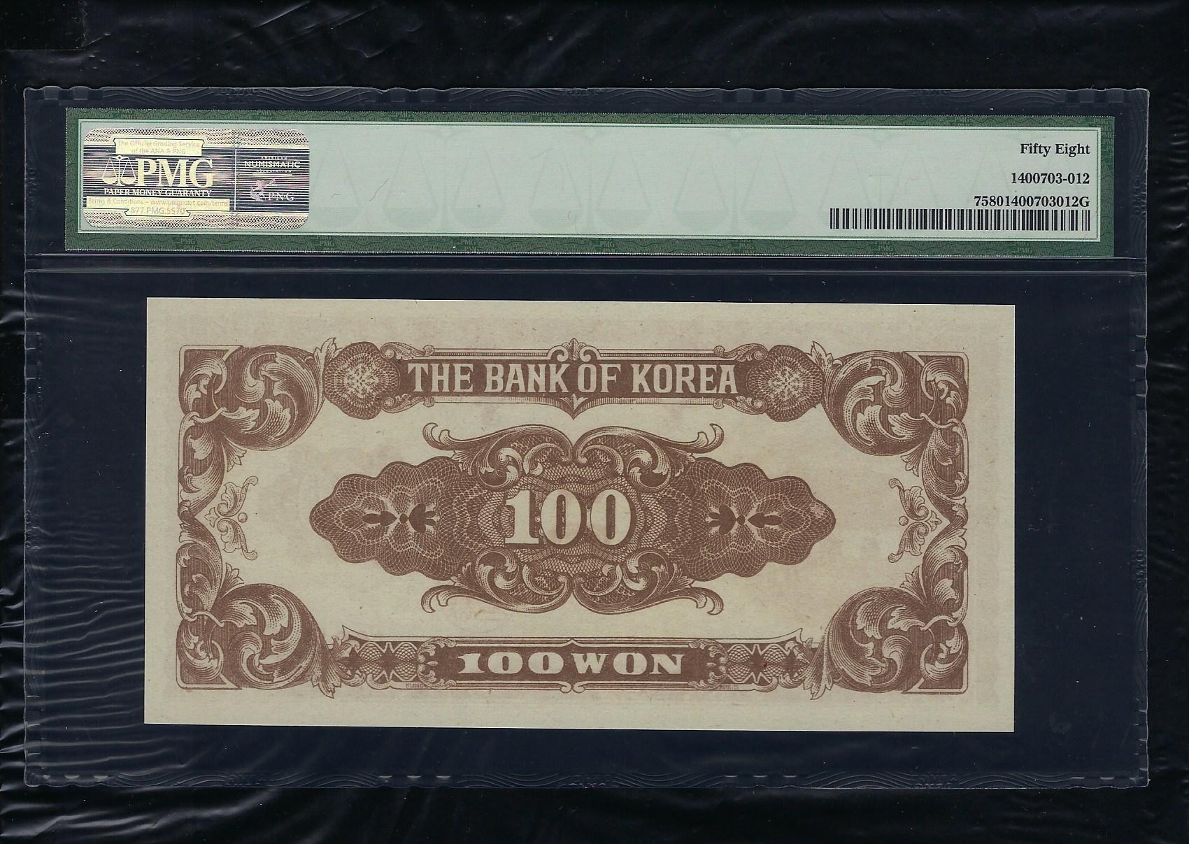 참고로 한국화폐도록 평가금액은 준미사용품이 140,000원입니다만 준미사용품 PMG 58 등급은 훨씬 더 높은 가격에 거래됩니다.