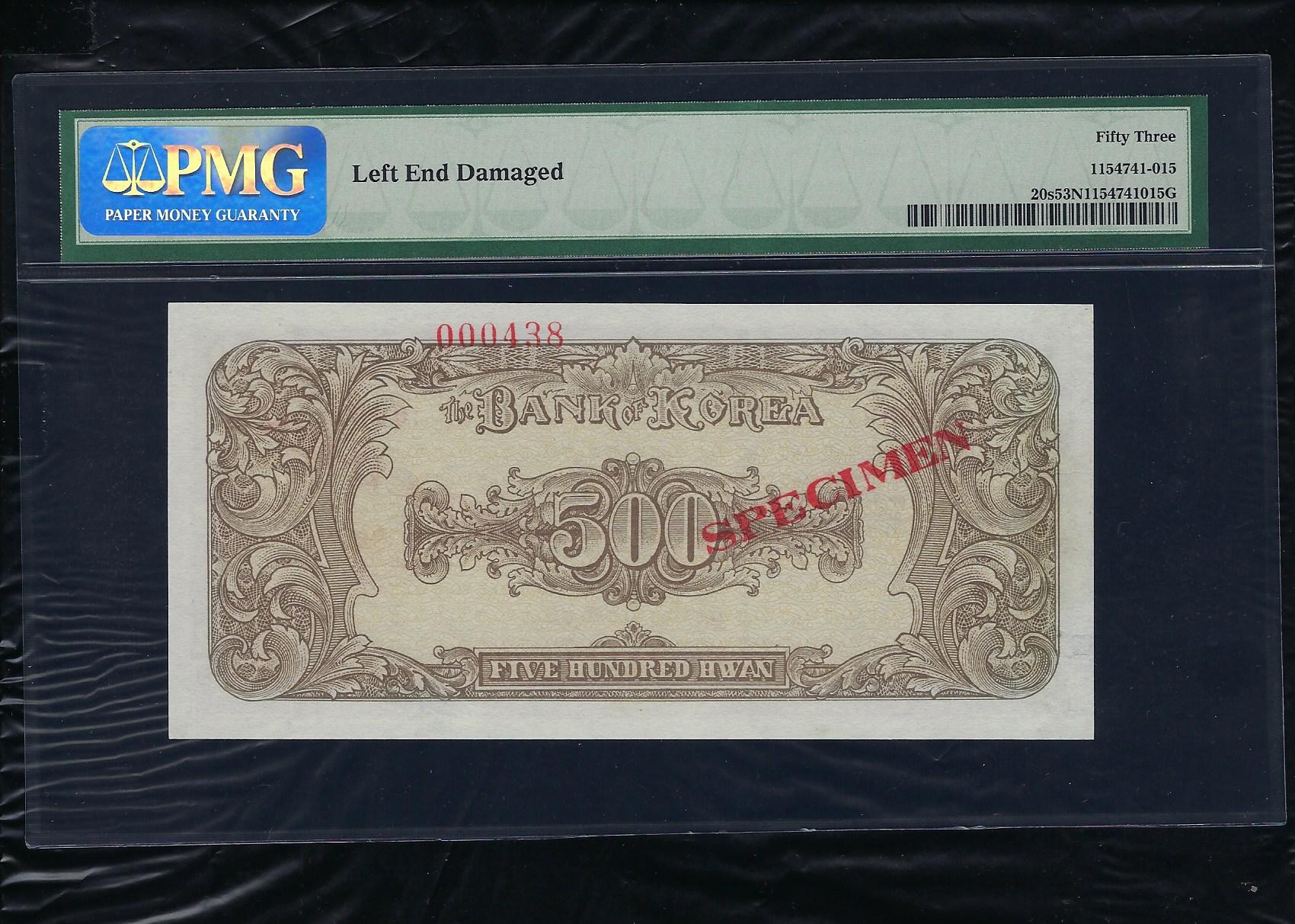 > 전체카테고리 > 우리나라 지폐 > 한국은행권 한국은행 500환권(중앙이박)(000)으로 상태는 준미사용품 PMG 53입니다. 참고로 대한민국화폐도록 평가금액은 준미사용품이 3,000,000원입니다.