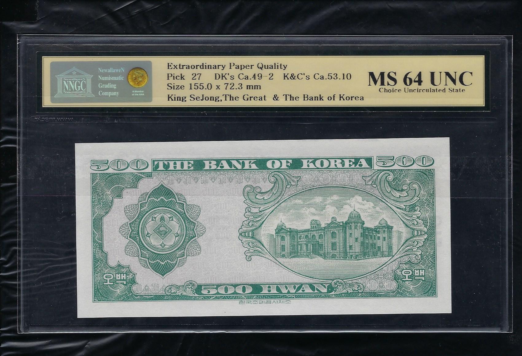 한국은행 개 500환권 세종대왕 제9판 가007포인트 NNGC MS 64 UNC