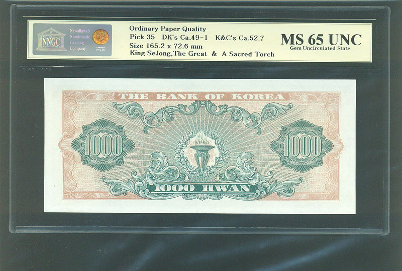 한국은행 개1000 환권 4294년 NNGC MS 65 UNC