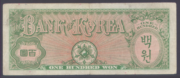> 전체카테고리 > 우리나라 지폐 > 한국은행권 > 한국은행 100환권 거북선 한국은행 거북선 100환권으로 상태는 극미품정도입니다.