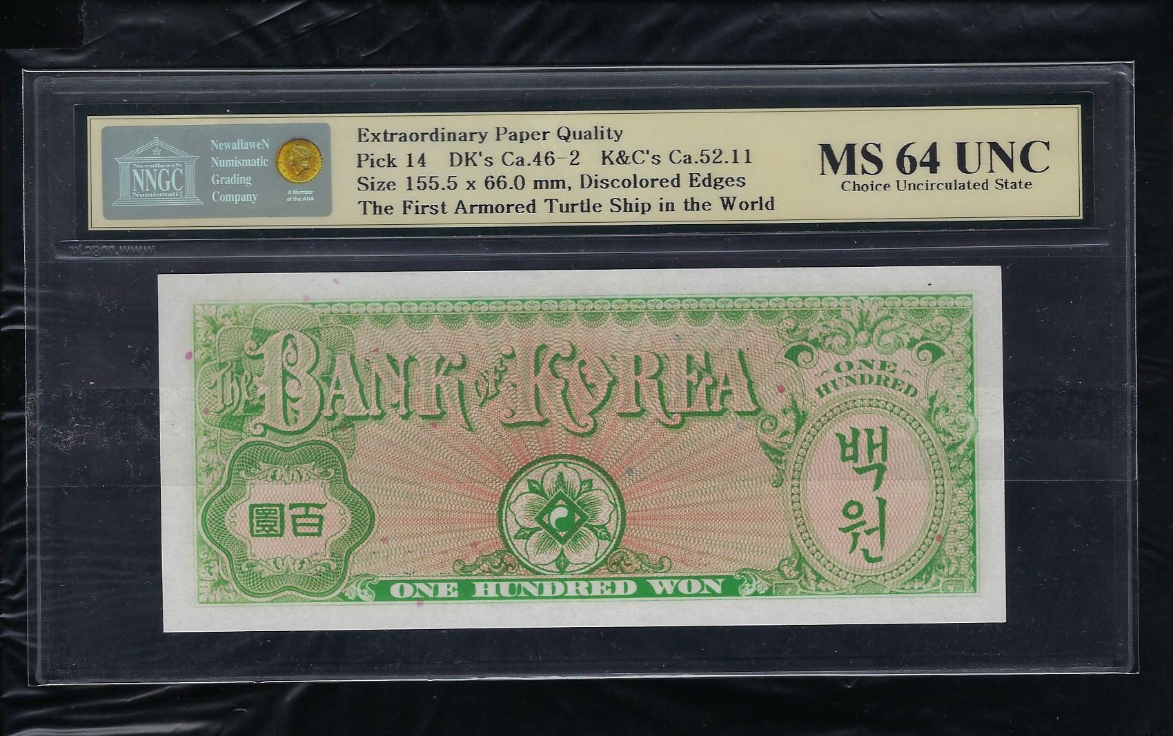 한국은행 100 환권 거북선 제39판 NNGC MS 64 UNC
