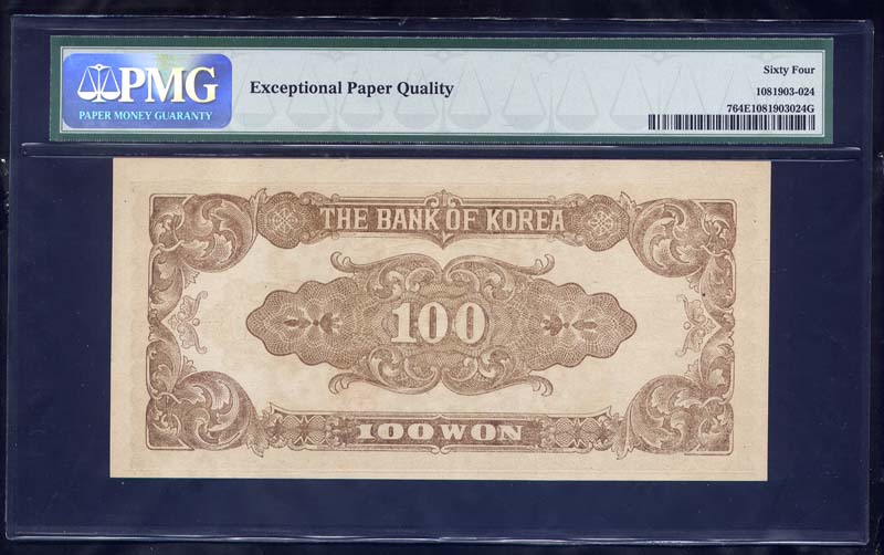 참고로 한국화폐도록 평가금액은 미사용품이 400,000원입니다만 완미 PMG 64 등급은 훨씬 더 높은 가격에 거래됩니다.