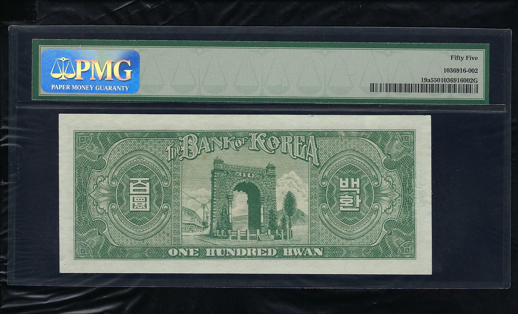 > 전체카테고리 > 우리나라 지폐 > 한국은행권 > 한국은핸 신 100환권 백색지 | 한국은행 신100 환권 백색지 4287년으로 상태는 사진에서 보시는 봐와 같이 더 설명이 필요없는 PMG 55