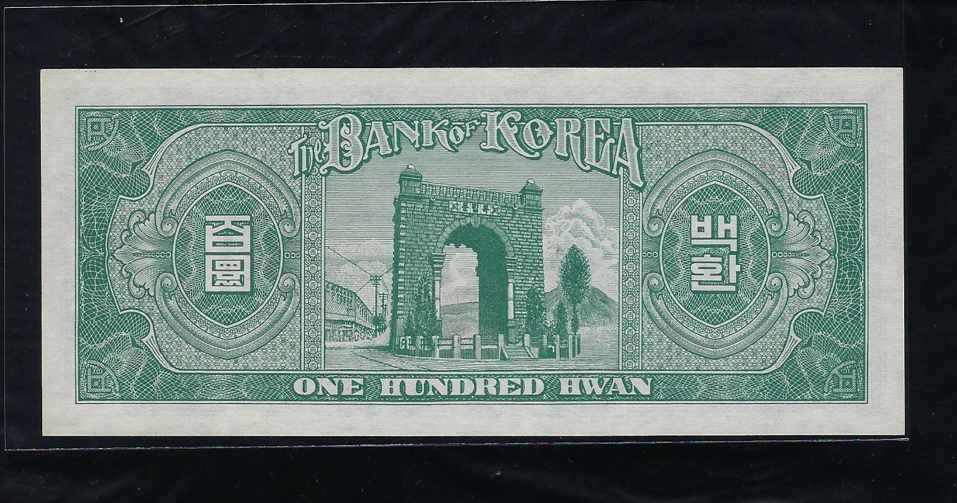 > 전체카테고리 > 우리나라 지폐 > 한국은행권 > 한국은핸 신 100환권 백색지 한국은행 신100 환권 좌이박 4289년 제129판으로 상태는 완전미사용품입니다.