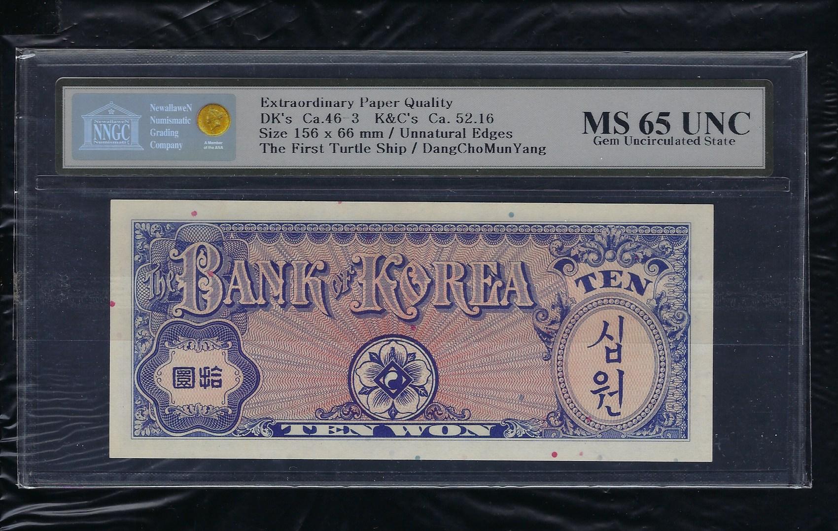 한국은행 10 환권 거북선 NNGC MS 65 UNC
