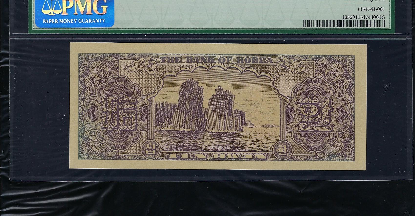 한국은행 신 10 환권 제 20 판 황색지 PMG 55