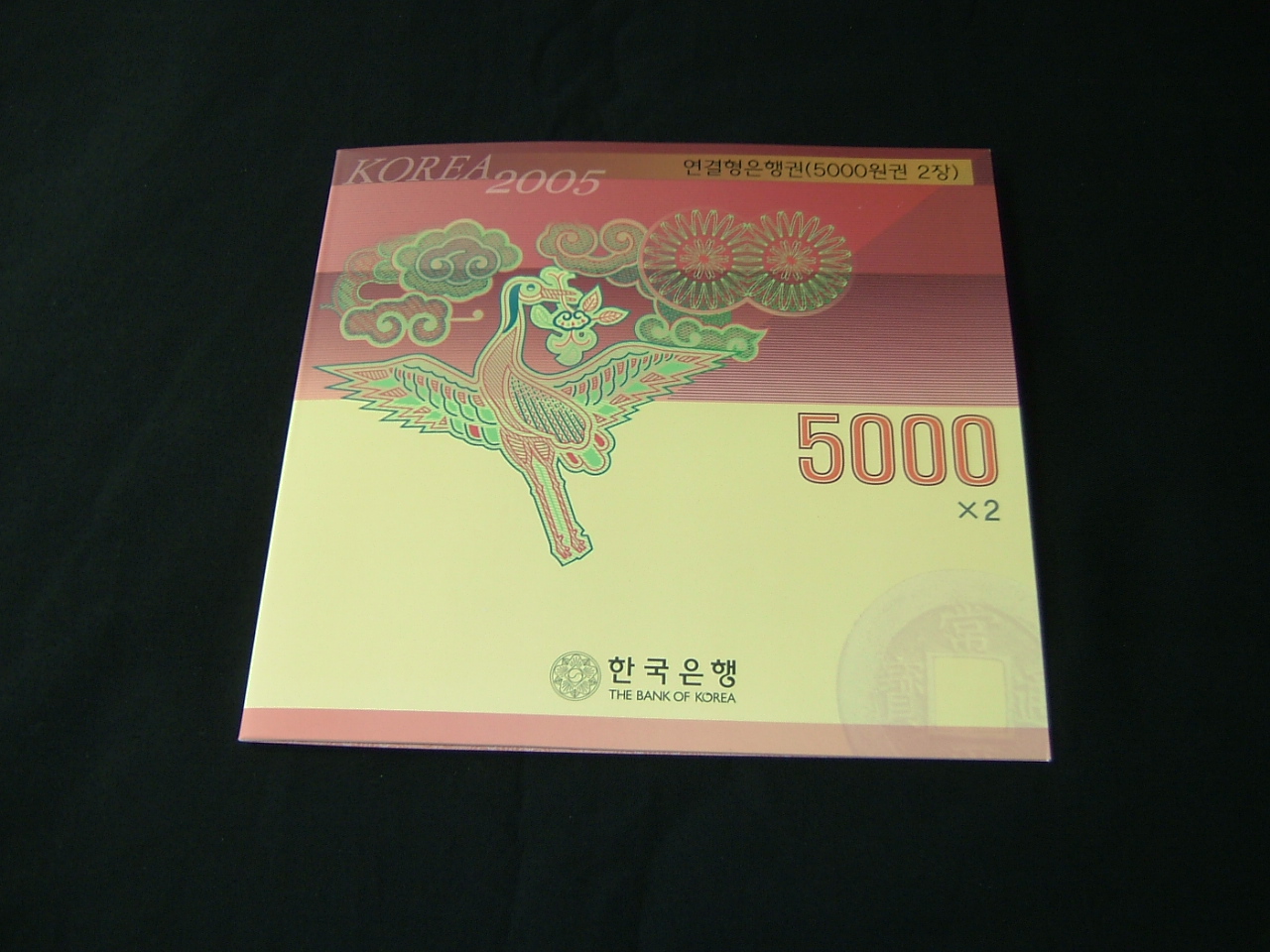 > 전체카테고리 > 우리나라 지폐 > 연결은행권 한국은행 라 5000원 2005년 2매 연결권첩(퍼펙트) 가가가 기호로 상태 완전 미사용품입니다.표지에는 2005년으로 되어 있으나 내용에는